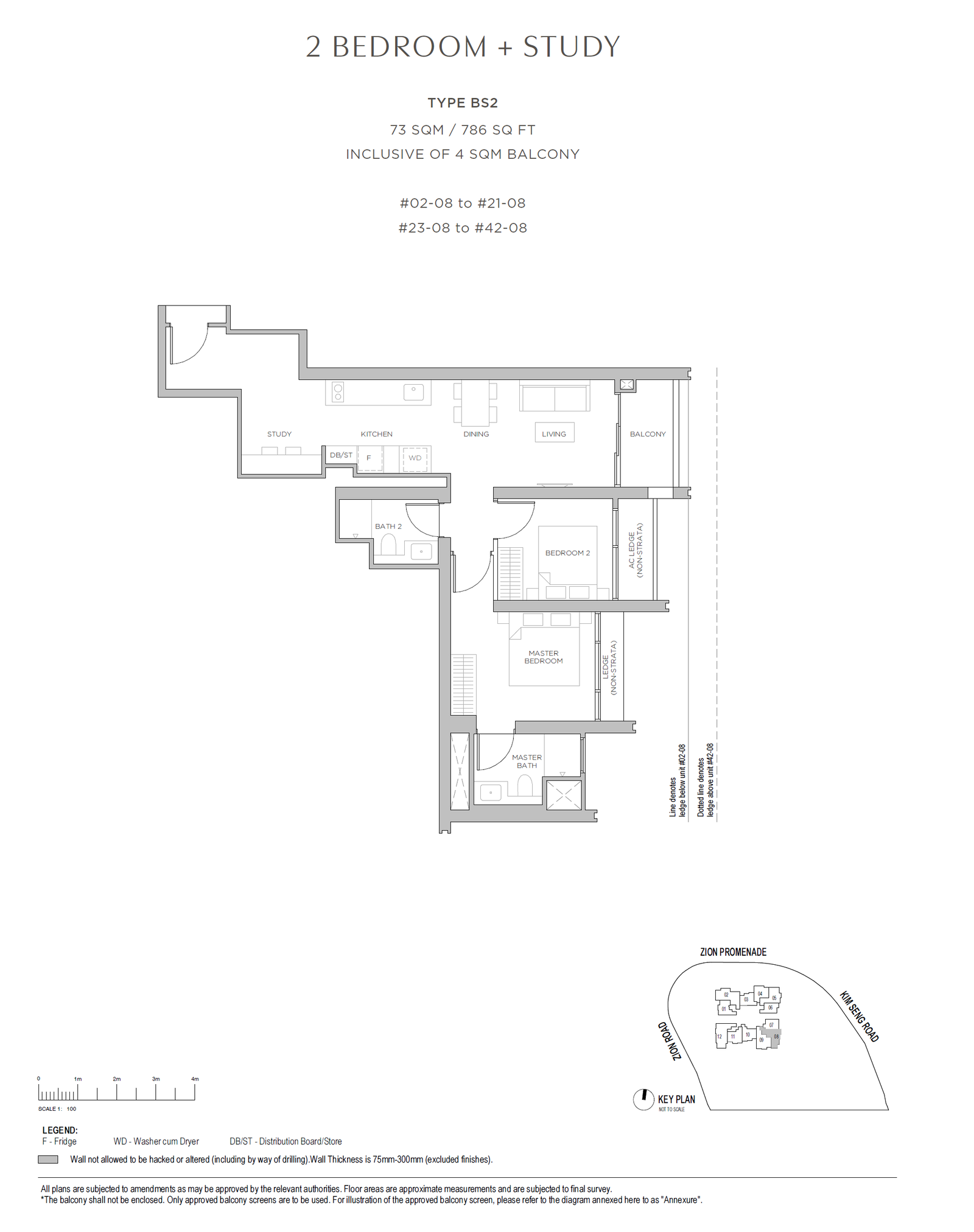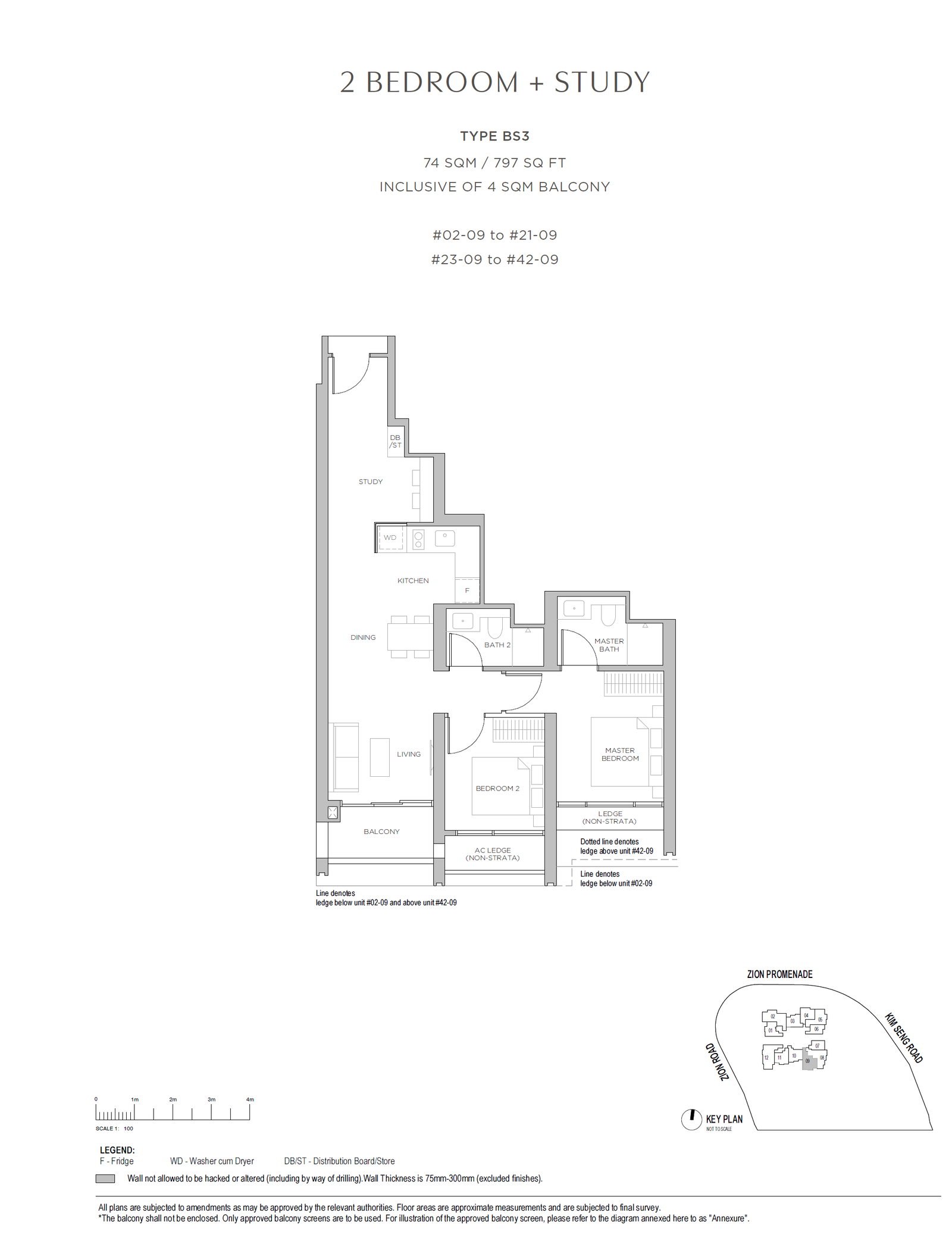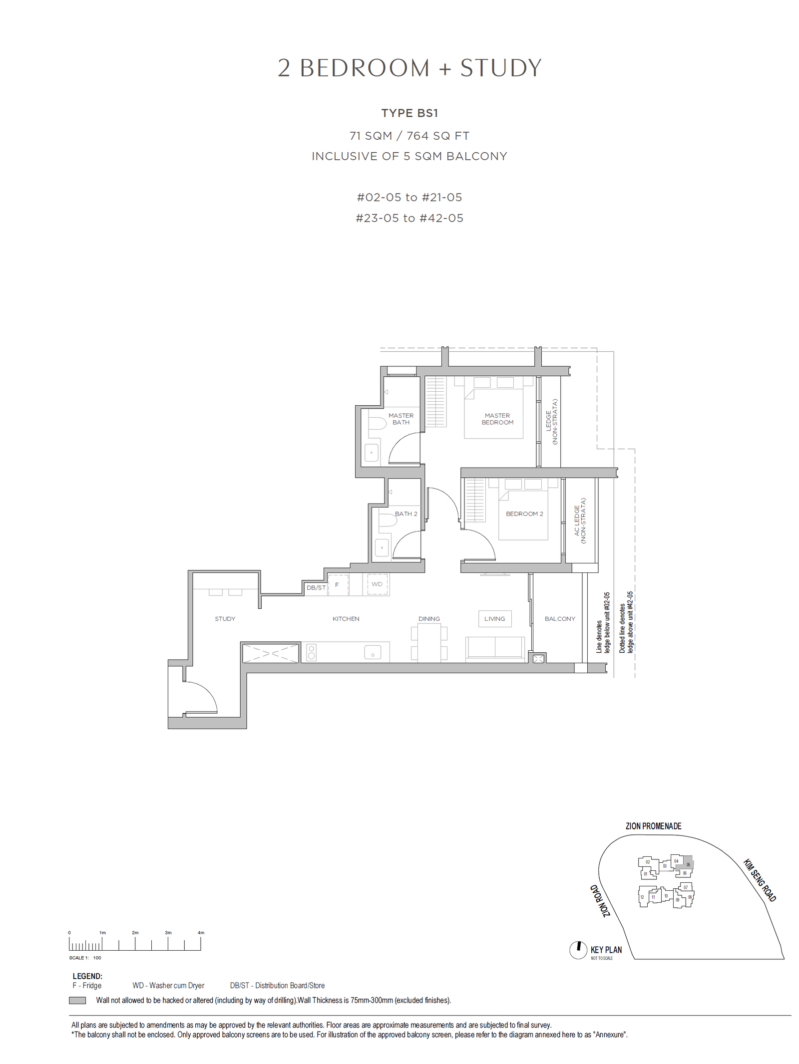 | 2 BEDROOM + STUDY | BS1 | 764 | 22 | $2,132,600 |
